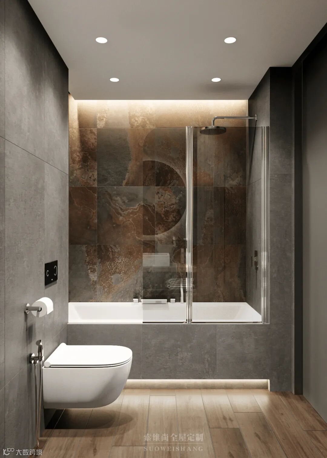 高出一个阶梯的卫浴营造出独立功能区间既视感,同时还能干湿分离,保持卧室干爽卫生。