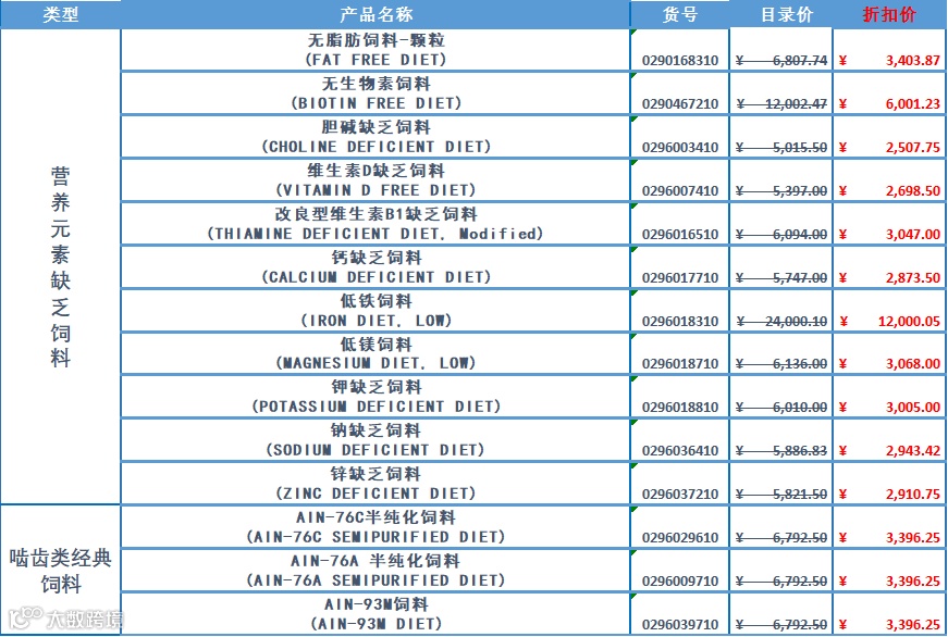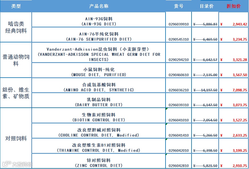 备注:动物饲料每个货号有3款包装规格,分别为10kg、20kg、50kg,以上罗列价格仅为10kg报价。下单请联系各区域业务,或来电4007-169-114.