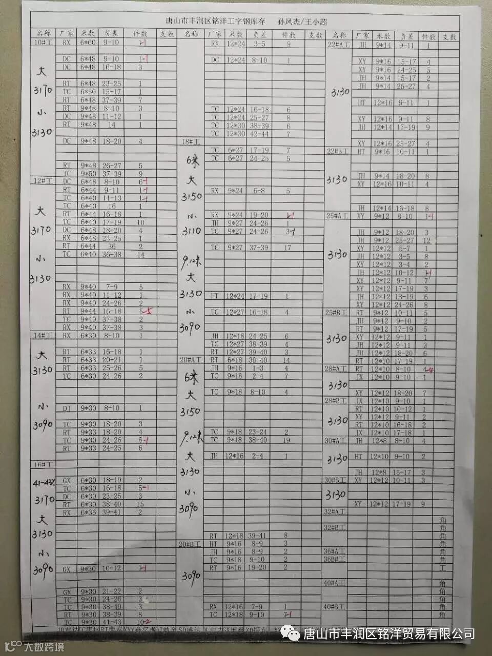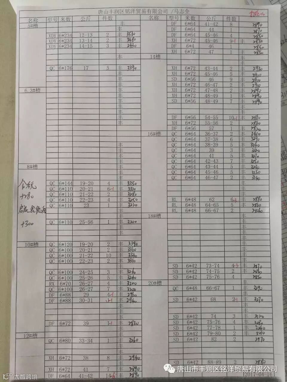 唐山市丰润区铭洋贸易有限公司唐山市丰润区铭洋贸易有限公司成立于2010年8月,注资900万,现有丰泰、聚兴隆、腾海贸易有限公司、丰润区兴洲运输有限公司四个子公司,主营工角槽钢、H型钢,常年库存三万吨。