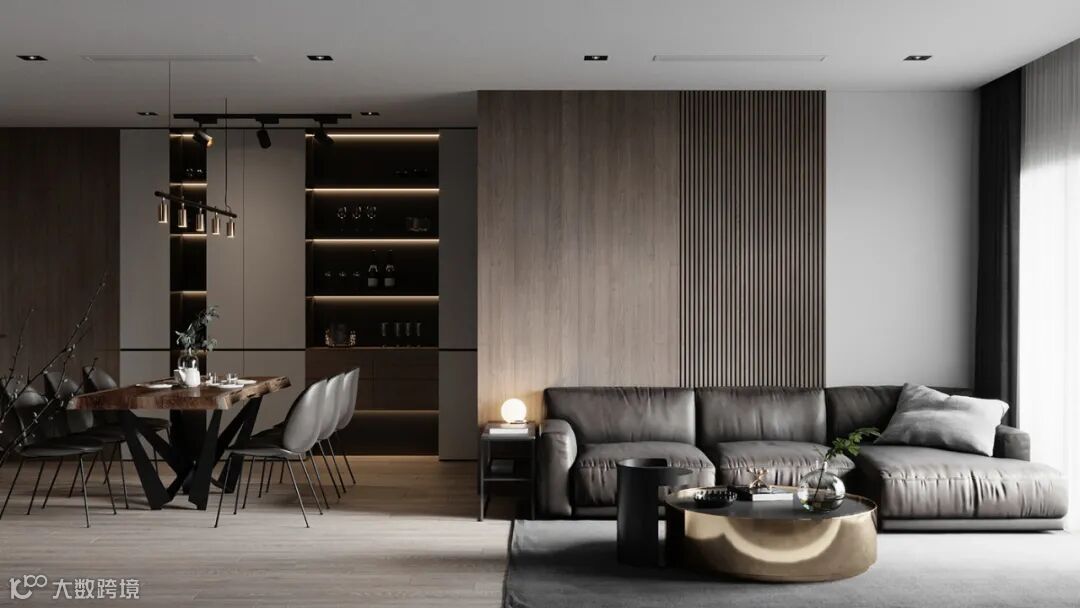 客厅引入自然的光照与灵气,当阳光倾泻而下,穿过透明的落地窗,洒落在地毯上,时间好像暂时印在了光影之上。
