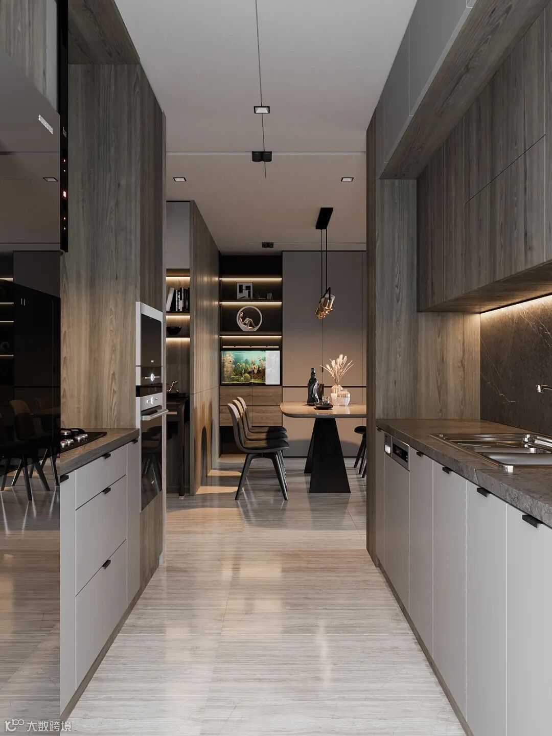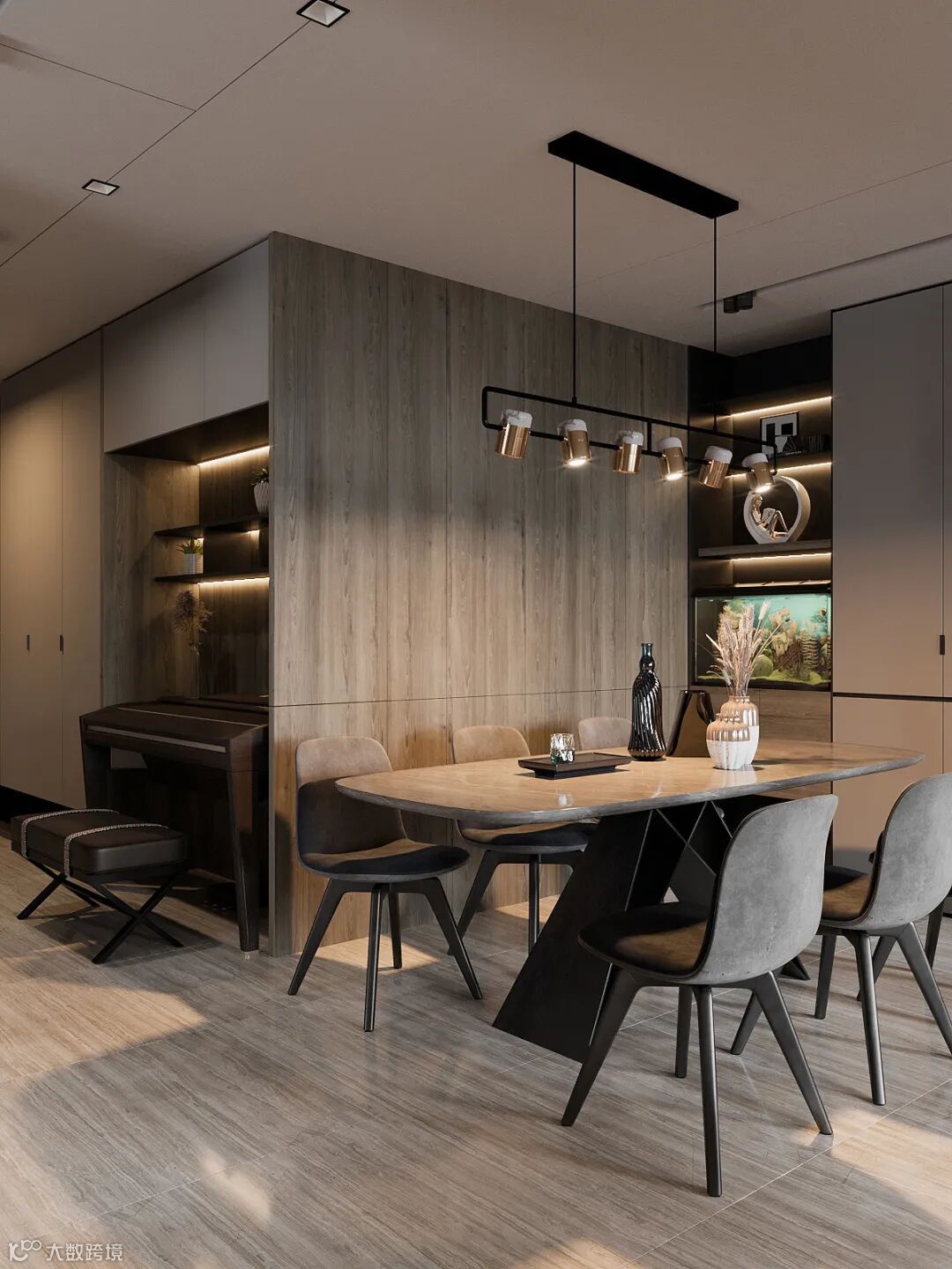 以灰色为主调,取得适宜一家人生活的温度平衡,徘徊,其中感受绚烂高雅的空间气质,仅以简单而不失质感的空间设计,就给人带来一种宁静高贵的视觉感受。