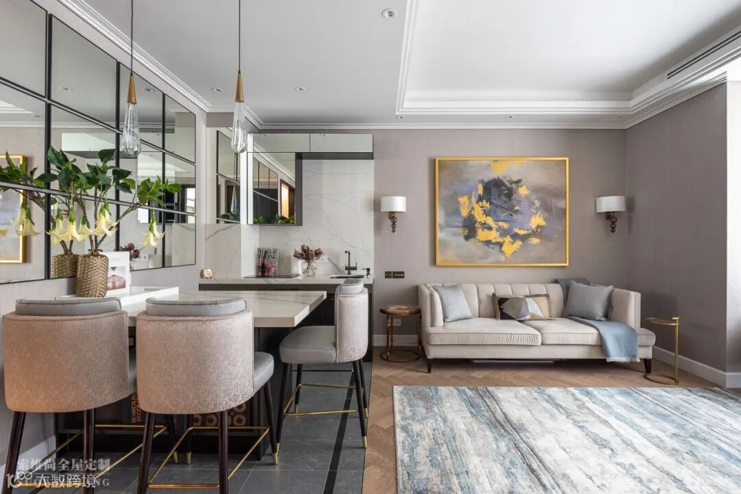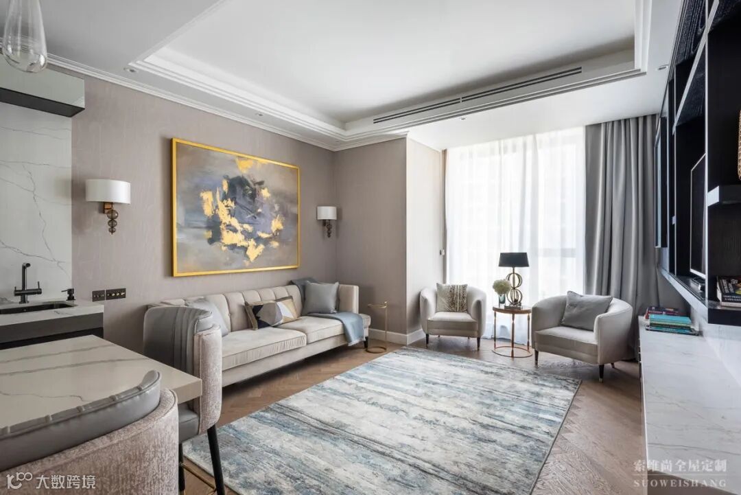 轻奢的全屋定制抛弃复杂浪漫的曲线设计, 通过硬朗的直线,使房屋呈现出简洁大方。精致的软装修则让整个空间透露出贵族气息,露而不显,却舒适享受,让人们在灯红酒绿的都市中拥有可以栖息的一角。