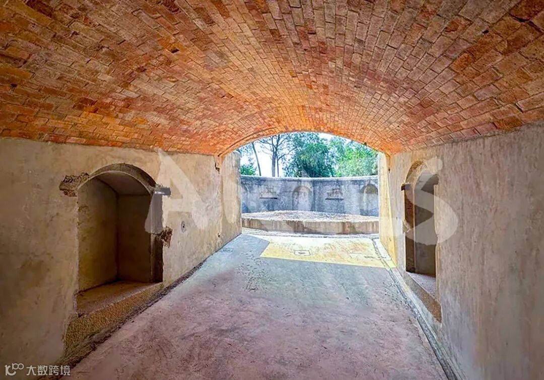 炮台现存3座炮位,包括两个主炮位和一个辅助炮位,整体布局体现了近代海防工事的科学设计。主炮位之间由一条长达50米、宽约3米的暗道相连,暗道内设有贮弹室和暗室,基础以麻石砌筑,顶部采用红砖券拱结构,既隐蔽又坚固。辅助炮位规模较小,但同样具备作战功能。炮台西侧保存有三间拱顶立柱结构的清兵营房,面宽14.85米,进深10.8米,采用西式建筑风格,反映了晚清军事建筑的中西融合特色。这些遗迹不仅是当时军事技术的实物见证,也展现了近代海防工程的智慧。