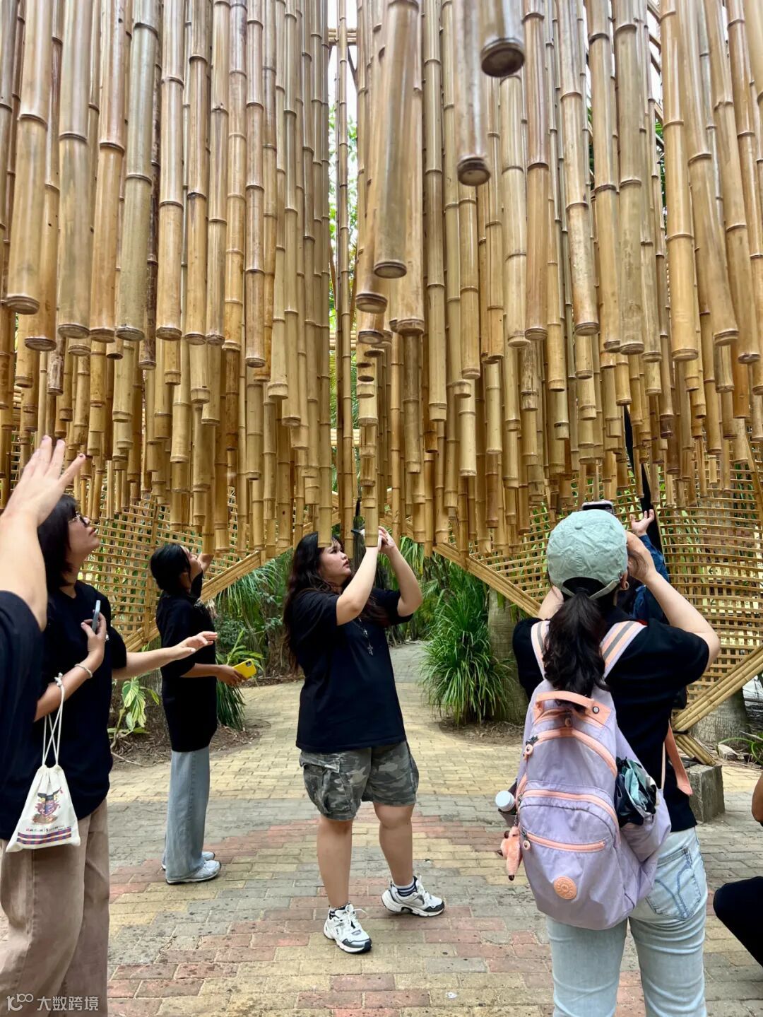 漫步园区,代表团逐一走访各大主竹构建筑及营造大赛作品,从整体空间布局到竹材拼接工艺,从生态适配设计到文化创意表达,都进行了细致观察与深入交流。大家一边拍照记录细节,一边探讨大赛作品的设计巧思,格外认可这些竹构将传统竹艺、现代建筑理念与湿地生态完美融合的思路,也切实感受到了南沙与东盟文旅建筑交流的深厚底蕴。