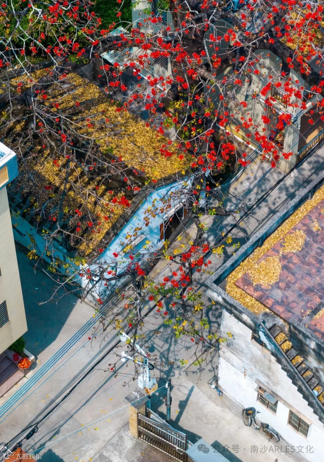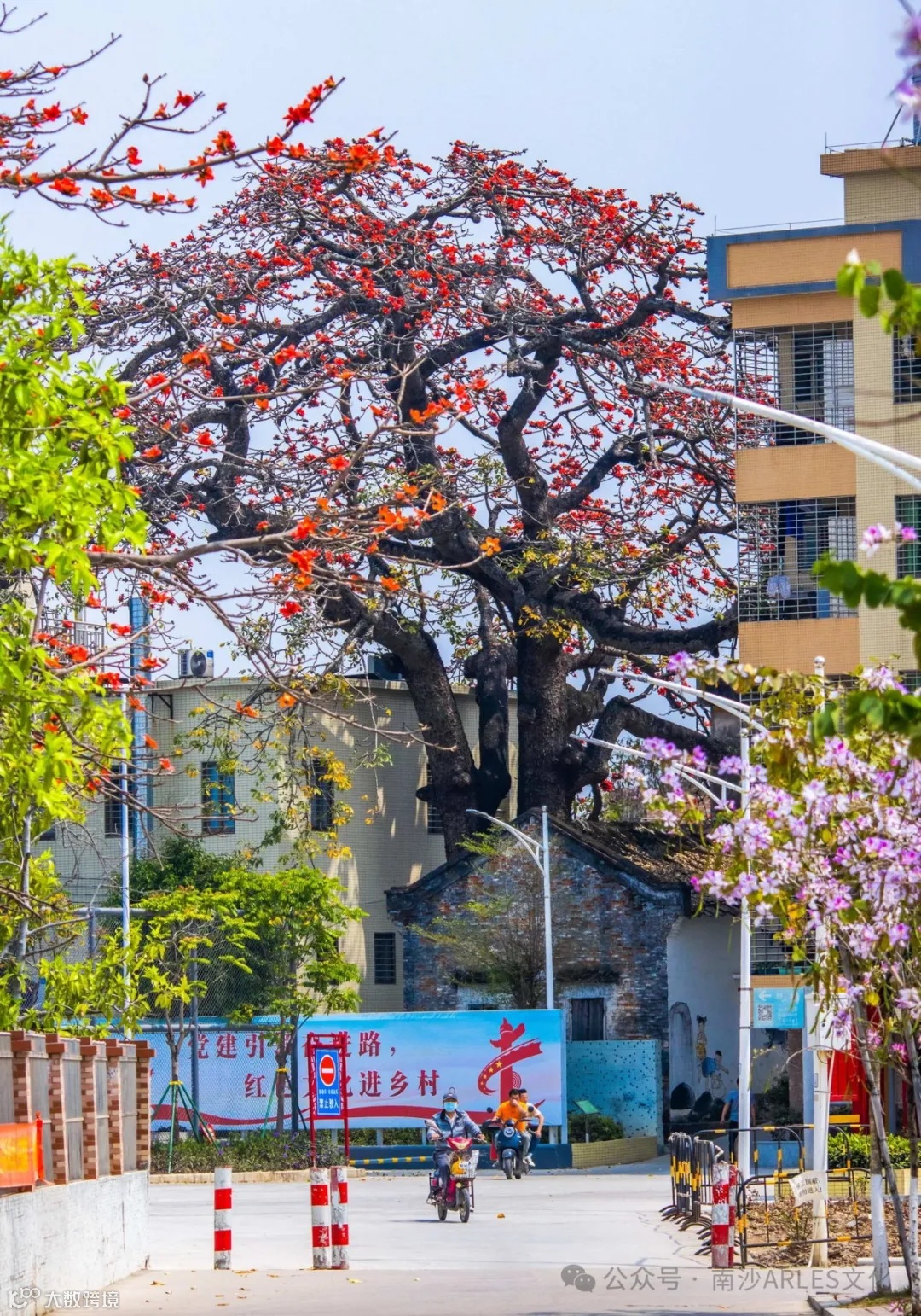 枝头不见新叶,先燃一树繁花,南沙的木棉是春日最有力量的色彩。万顷沙同兴村的百年古棉,历经岁月依旧灼灼绽放;东涌里的巨型木棉装置,搭配岭南骑楼,随手一拍就是国风大片;大稳村展览馆旁,木棉与水乡烟火相融,红得热烈又温柔。每一朵花都像燃烧的火炬,点亮南沙的春日天际。
