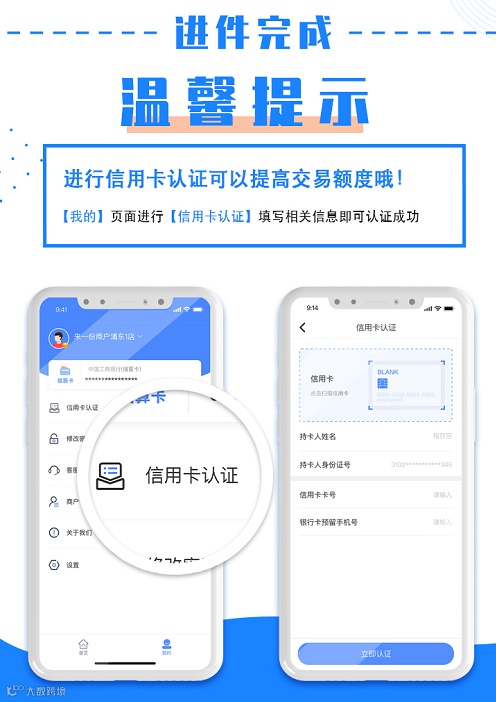 注:认证信用卡以后,商户当日出款额度和单日出款额度会更高,此功能适用于大额信用卡客户。