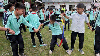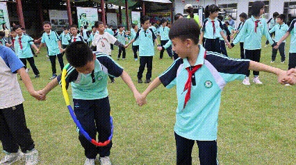 偶尔圆环卡住或滑落,孩子们立刻互相帮忙调整姿势,当最后一位同学成功让圆环落地时,整个小队瞬间爆发出欢呼声,大家兴奋地互相夸赞 “我们太厉害了”!这场充满欢声笑语的游戏,让孩子们在互动中拉近了距离,更深深体会到 “一个都不能少” 的团队力量!