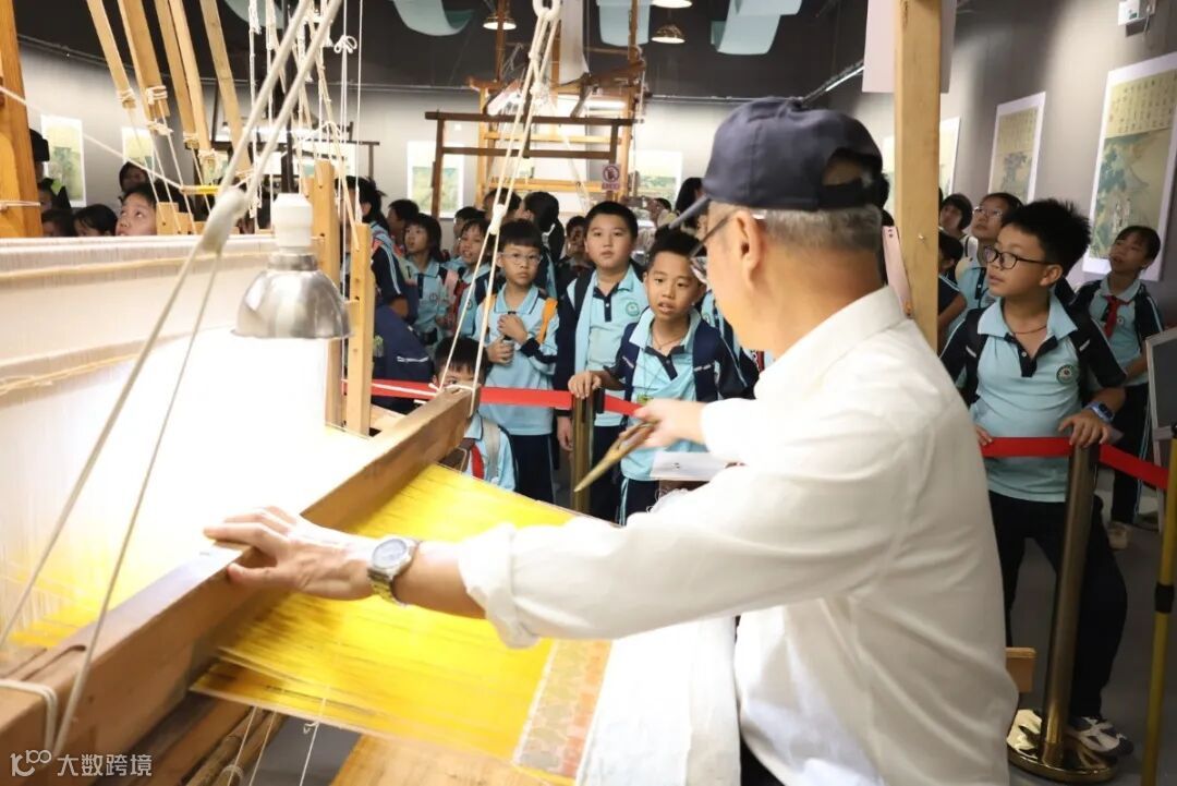 “这就是被誉为‘锦绣之冠’的宋锦,一件成品可能需要数月甚至数年才能织成哦!” 老师的话让孩子们满脸震撼,小身子不由自主地往前凑,想要看清每一个细节。,看得孩子们眼睛瞪得圆圆的,忍不住小声惊叹:“好漂亮呀~”