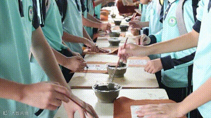 终于迎来超期待的过乌拓印环节!在指导老师的带领下,孩子们好奇地围在准备好的工具旁,眼睛里闪着兴奋的光,接着小心翼翼拿起笔蘸取河泥,按照老师教的方法涂抹在拓印板上。当揭开拓印板后,看着图案在小方巾上清晰显现,孩子们忍不住发出阵阵惊叹:“哇,好漂亮!”捧着自己亲手完成的过乌拓印作品,孩子们脸上都洋溢着满满的自豪!