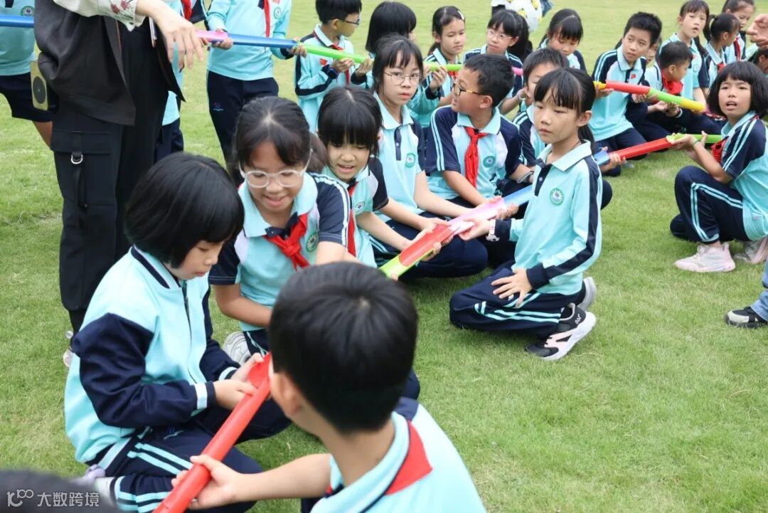 大草坪上,四年级的 “珠行万里” 挑战赛热闹开赛!孩子们分成若干小队,手持半截管道,眼神专注地盯着队友递来的小球,一场考验耐心与默契的接力赛正式拉开序幕!