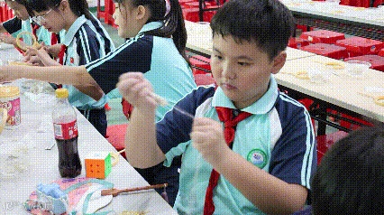 蚕丝扇DIY环节来啦!桌上的蚕茧、扇骨、小装饰品摆得整整齐齐。在指导老师示范完后,小不点们迫不及待动手尝试。先把蚕丝从蚕蛹中抽出来,接着开始一圈圈缠绕扇面,这可是一件非常需要耐心的事情!孩子们一边交流一边创作,教室里满是叽叽喳喳的快乐声响。遇到蚕丝滑落的小难题,大家要么互相帮忙固定,要么举手请教老师,脸上认真的小模样格外可爱~