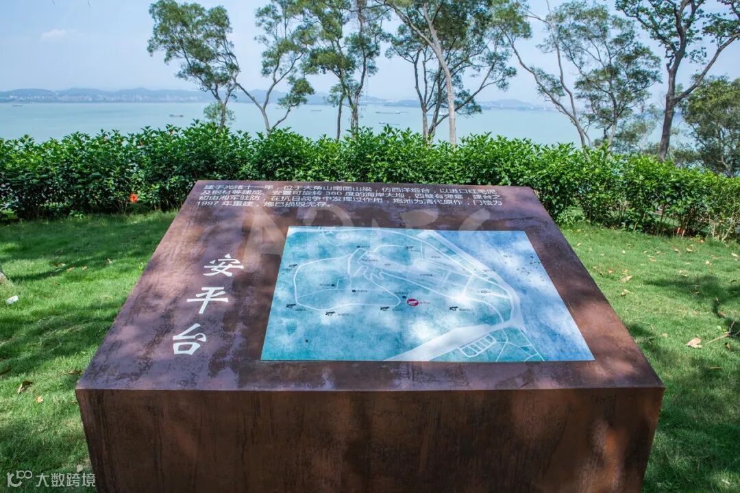 安平台建在大角山南山梁,门楼上灰塑匾额写有“安平台”三字,无上下款炮池为圆形。1997年在第二期维修工程中对门楼、坑道、炮池进行了维修