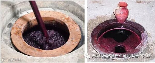 完成发酵后,葡萄皮、葡萄籽和葡萄梗会沉至缸底,他们称之为Chacha(恰恰);在经苹果乳酸发酵过程后,葡萄酒和Chacha会留在Qvevri缸内陈年,缸口会以黏土和泥土封死,陈年时间和Chaha的多少因酒庄而异。