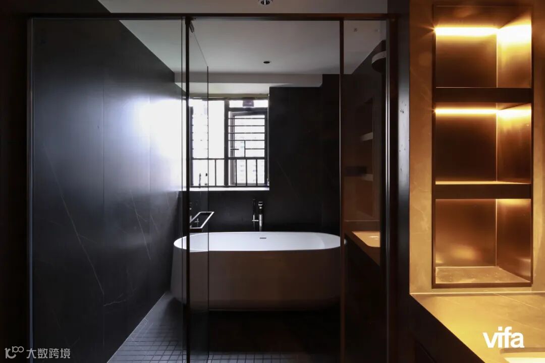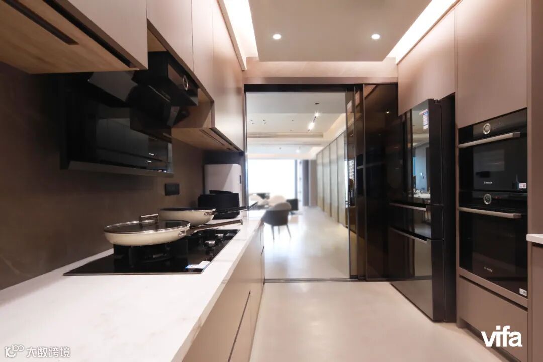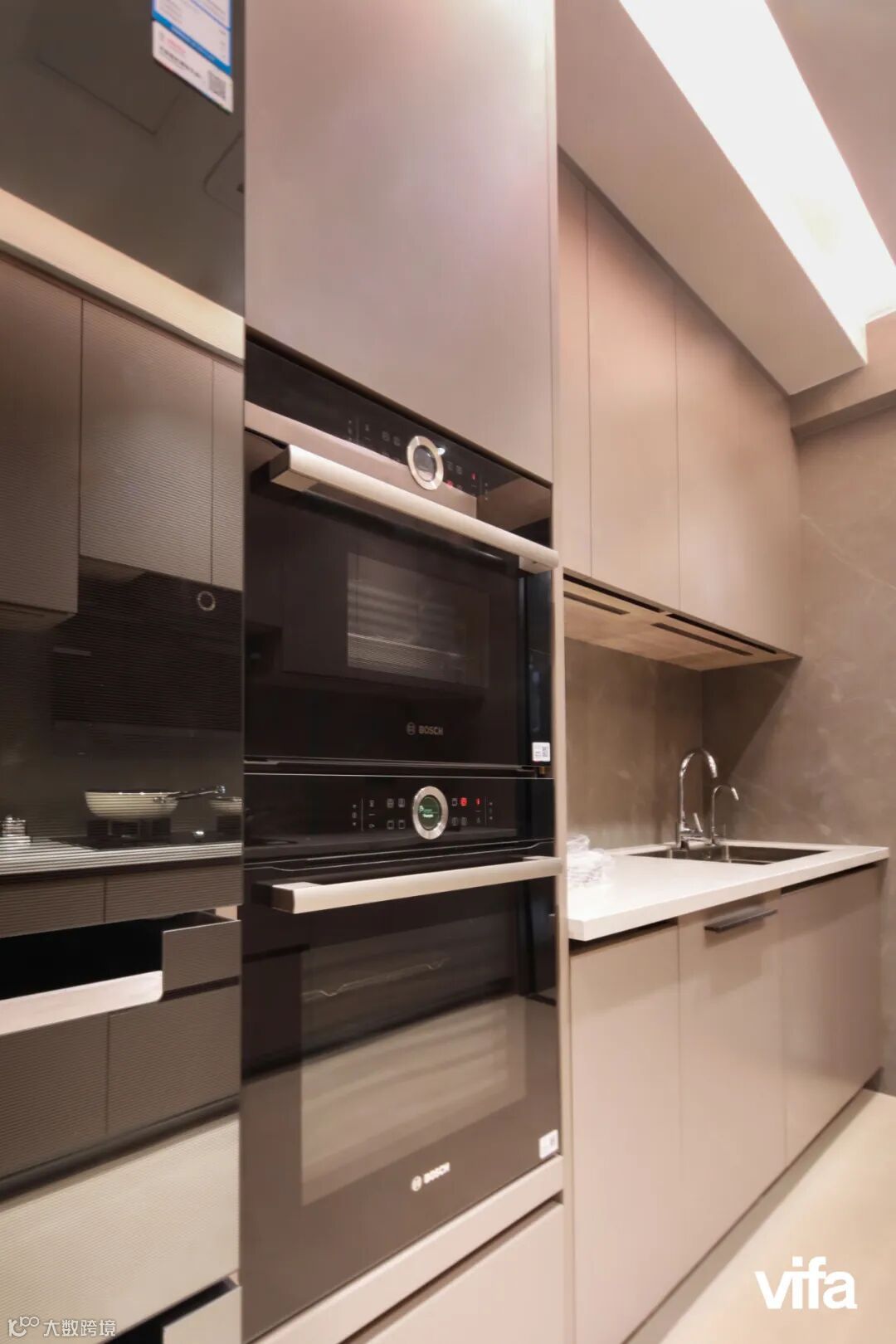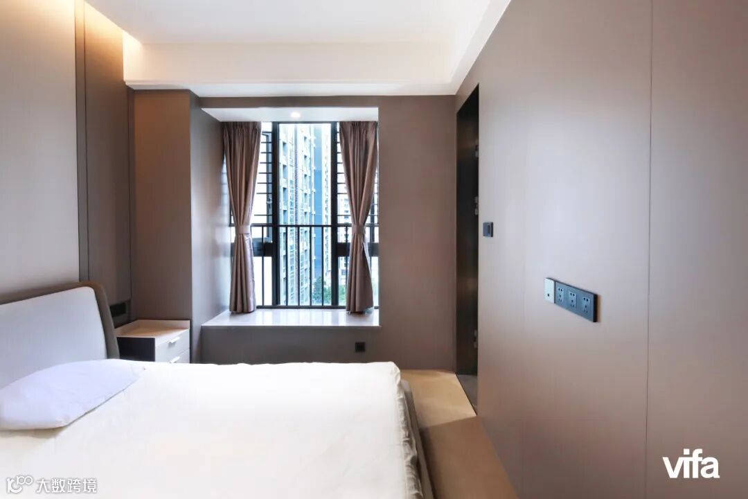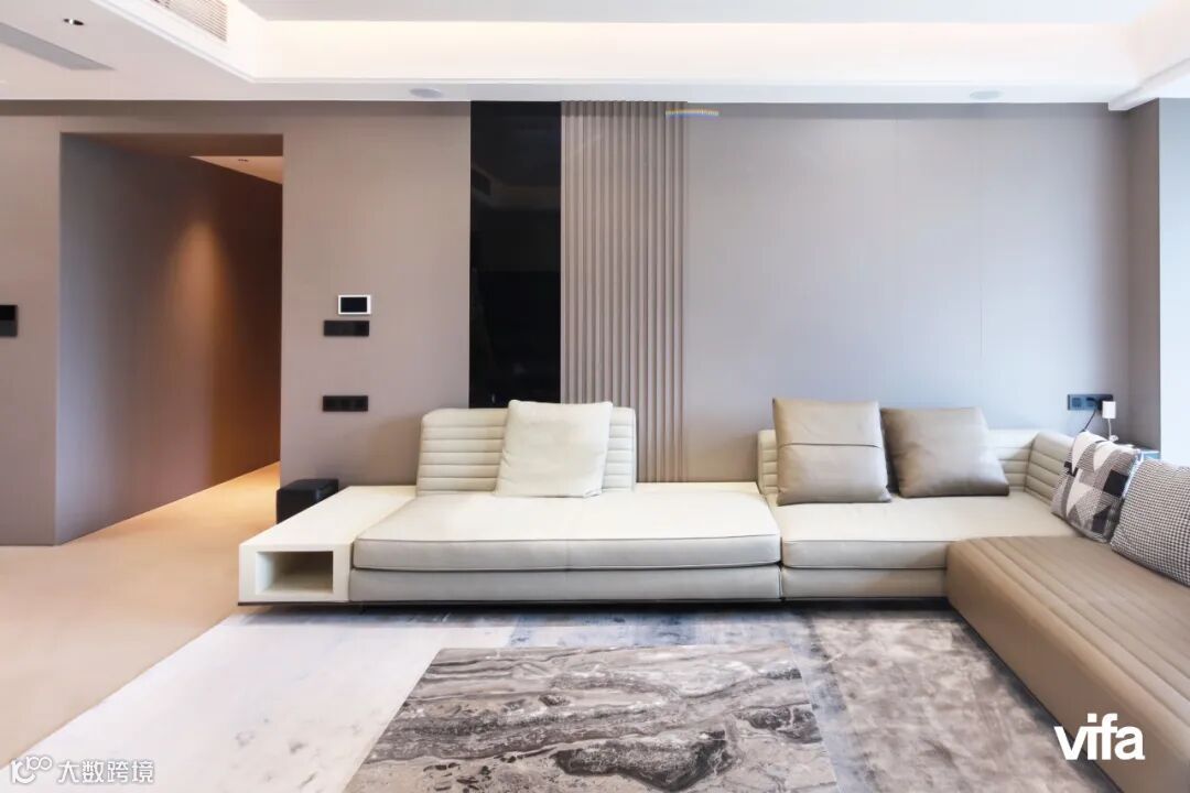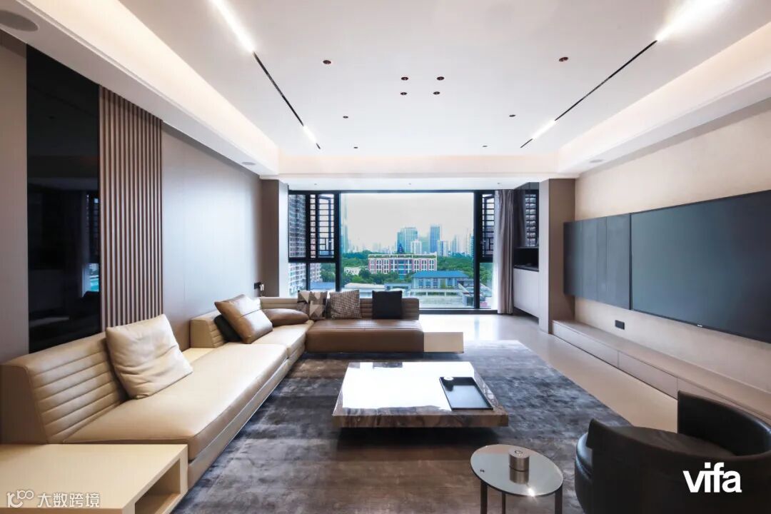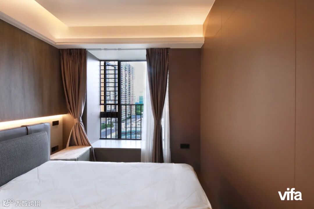 在本案中,选用沉稳的大地色系——咖色作为空间主色调,辅以深灰色、木色、白色点缀,简约有序,主次分明。设计师在现代主义设计的整洁与舒适上,为居者打造出自然简约的温暖空间,透露出优雅高级的生活气息。