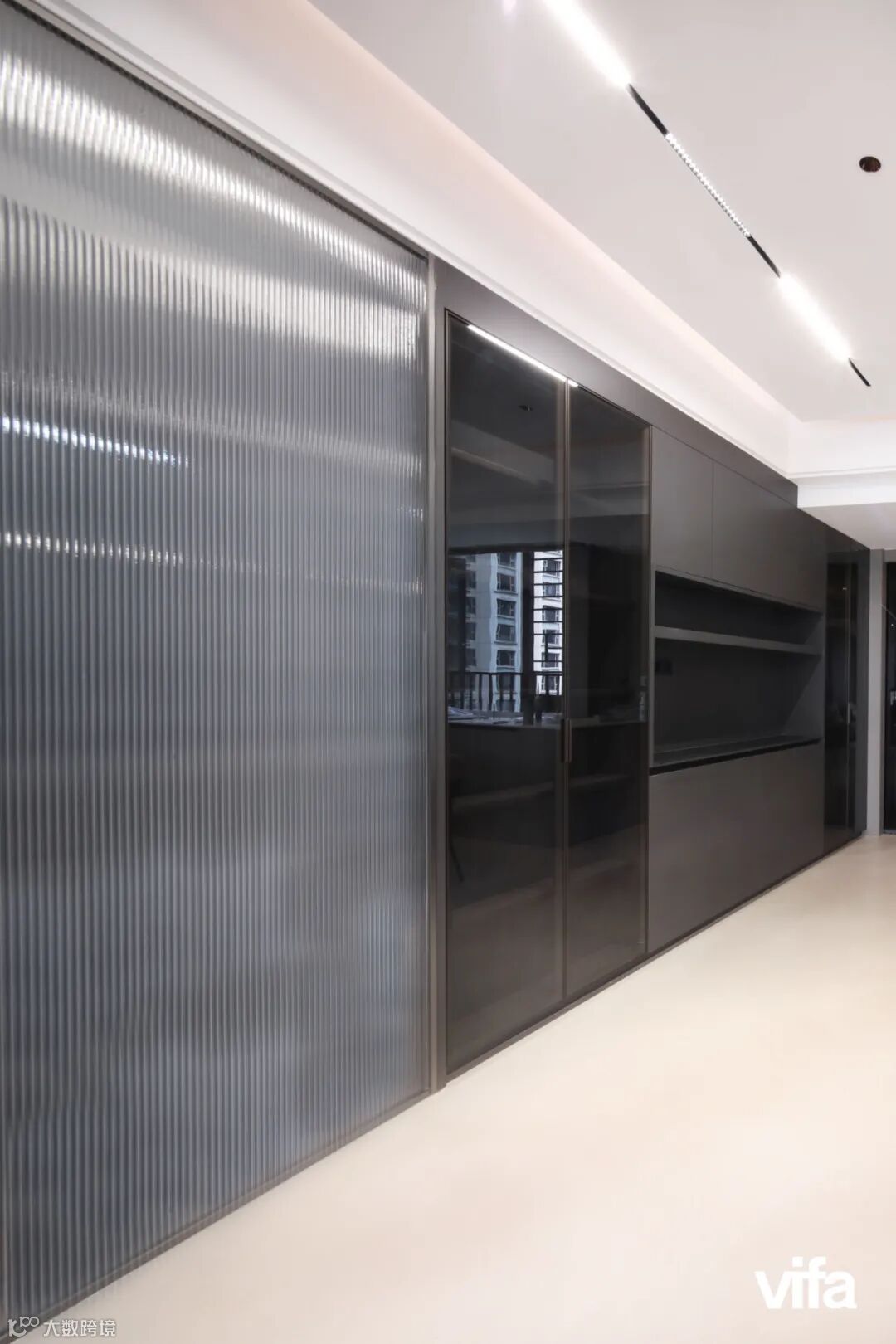 绒面灰收纳柜与镁铝合金玻璃展示柜完美搭配,