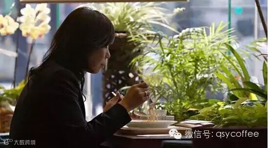 一位年轻的女士独坐在咖啡店里,正一边小口喝着茶一边看书。她停了一小下,在旁边的便签本上草草写上几个字,拿给路过的服务员看,上面写着:“请问洗手间在哪儿?”