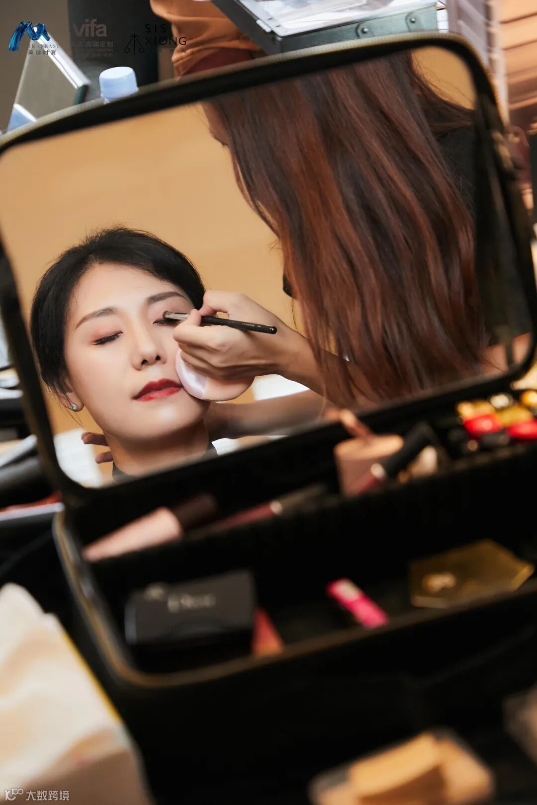 在高级化妆师的簇拥下盛装以待。