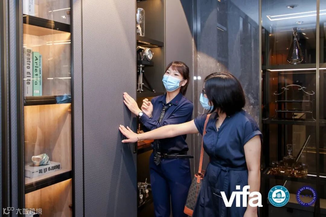 校友们信步游走在时尚轻奢的威法展厅中,