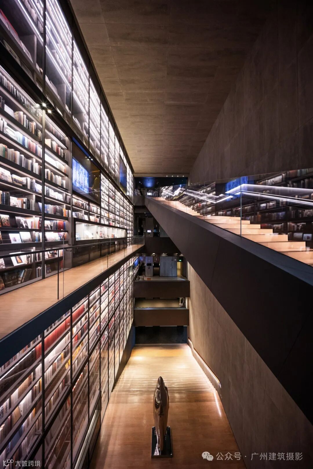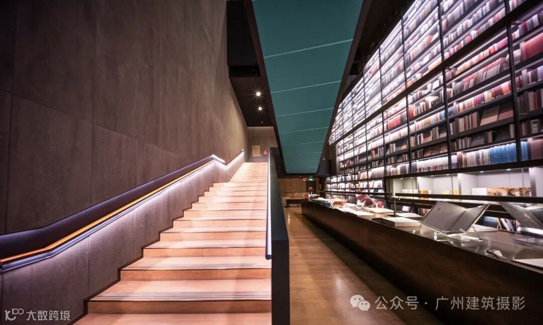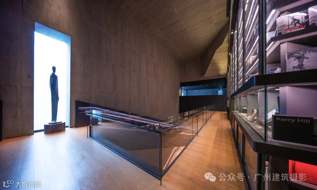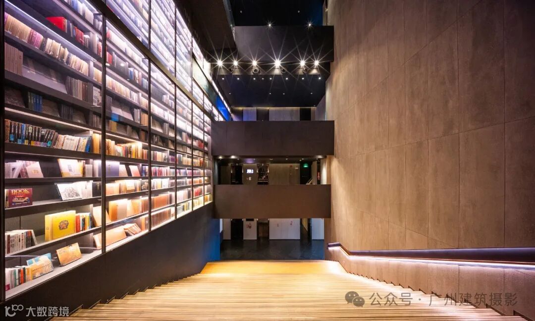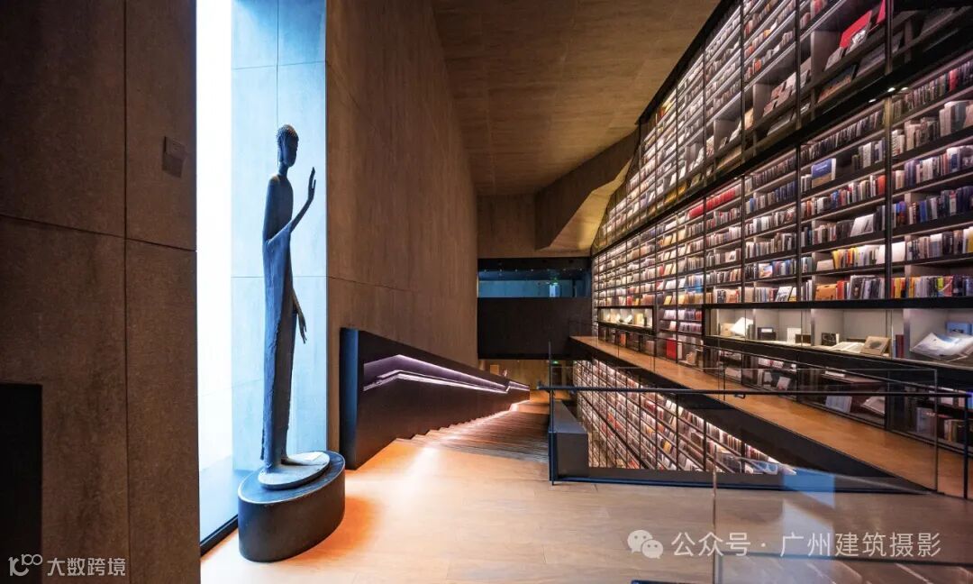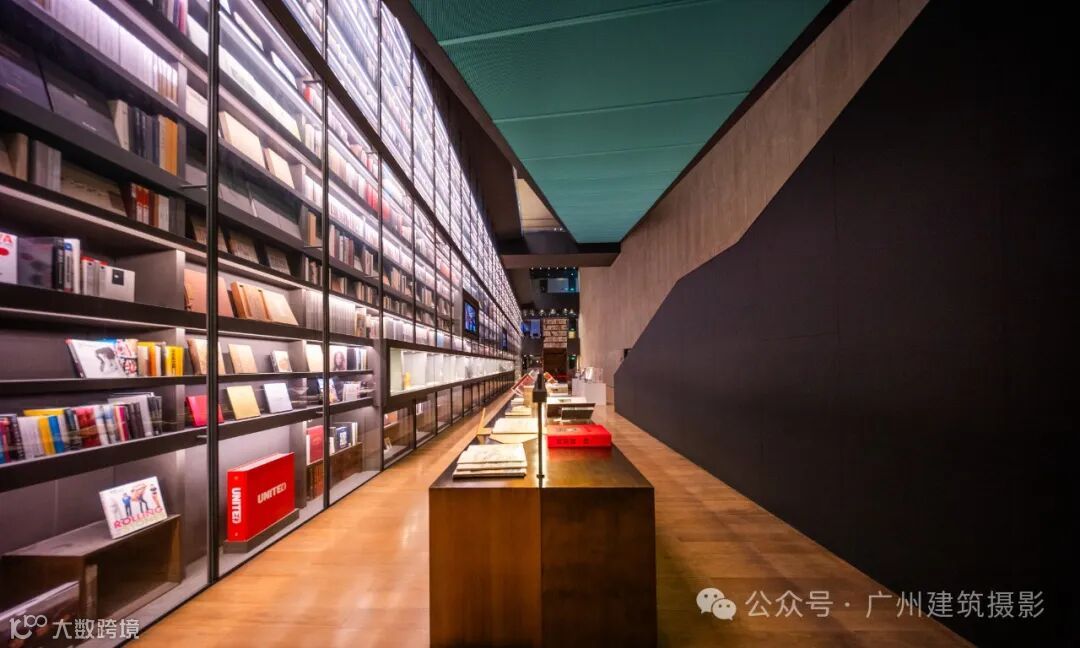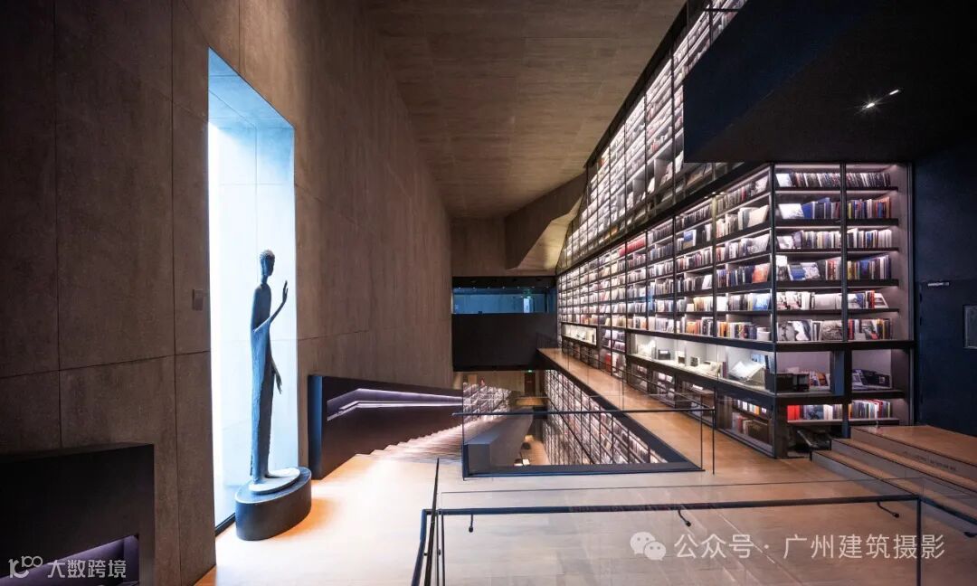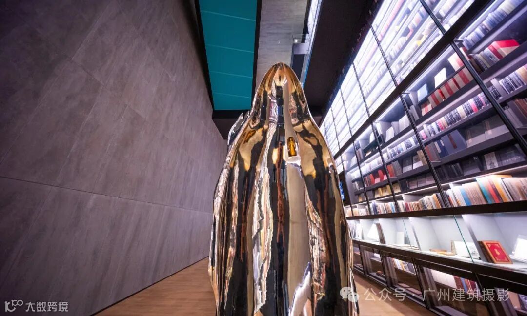 中心最引人注目的是其荣获德国红点设计大奖的“世界最大艺术书墙”(Artron Wall)。这座书墙高约30米、宽约50米,收纳了4万册艺术图书,涵盖中外艺术、收藏、摄影等多个领域。藏书包括全球限量版艺术图书、珍贵古旧书、世界著名博物馆及顶级艺术学府出版物等,语种多达十种。书墙不仅具有展示功能,内部还采用恒温恒湿设计以保护珍贵文献,其中半数书籍为绝版或非卖品,堪称“一面书墙,一部艺术史”。