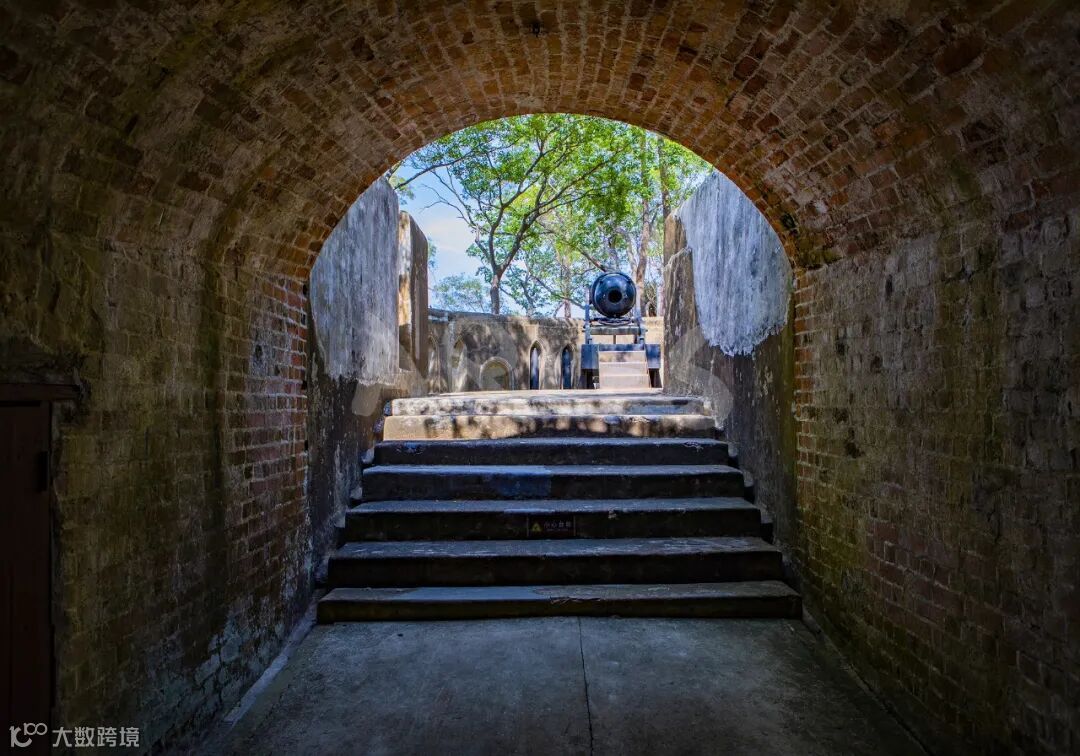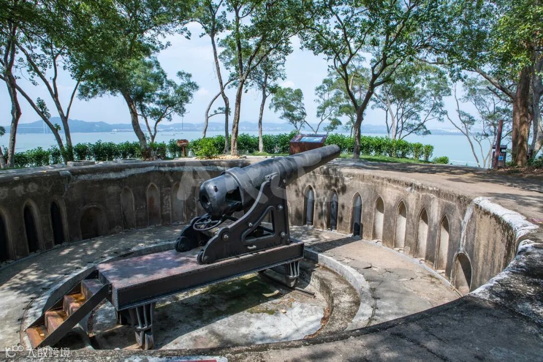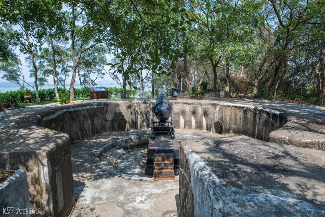 大角炮台在南沙鹿颈村大角山,它和东莞的沙角炮台东西隔江对峙,扼守虎门水道出口,是虎门的第一道防线,炮台始建于清道光十年,那时只有“炮城一处,周围九十三丈,炮洞十六个,铁炮十六门,防弁一员,防兵五十名”(《筹海初集》卷一)。后因其距主航道过远,只作为号令台。大角炮台设守台千总一员,防兵数百人。第一次鸦片战争中于道光二十年十二月十五日(1841年1月7日),被英国侵略军攻陷,炮台遭到严重破坏。道光二十三年(1843年)重修大角炮台。咸丰六年(1856年)在第二次鸦片战争中,被英法联军破坏,光绪十一年再次重建,改前膛炮城为德国克虏伯后膛炮台,由原一处炮城增加到九个炮台,遍布整个大角山、蒲洲山的山头。新建的大角山各炮台都有完整的炮池、坑道、门楼,部分还有独立的火药局及军事设施,现在遗存的炮台都是这时期的建筑物,鸦片战争时期的大角炮台已全部被毁,踪迹难寻。