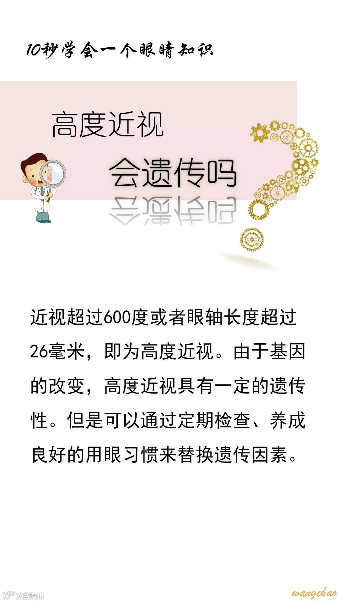 1、父母双方如均为高度近视,其子女通常发病率在98%以上;
