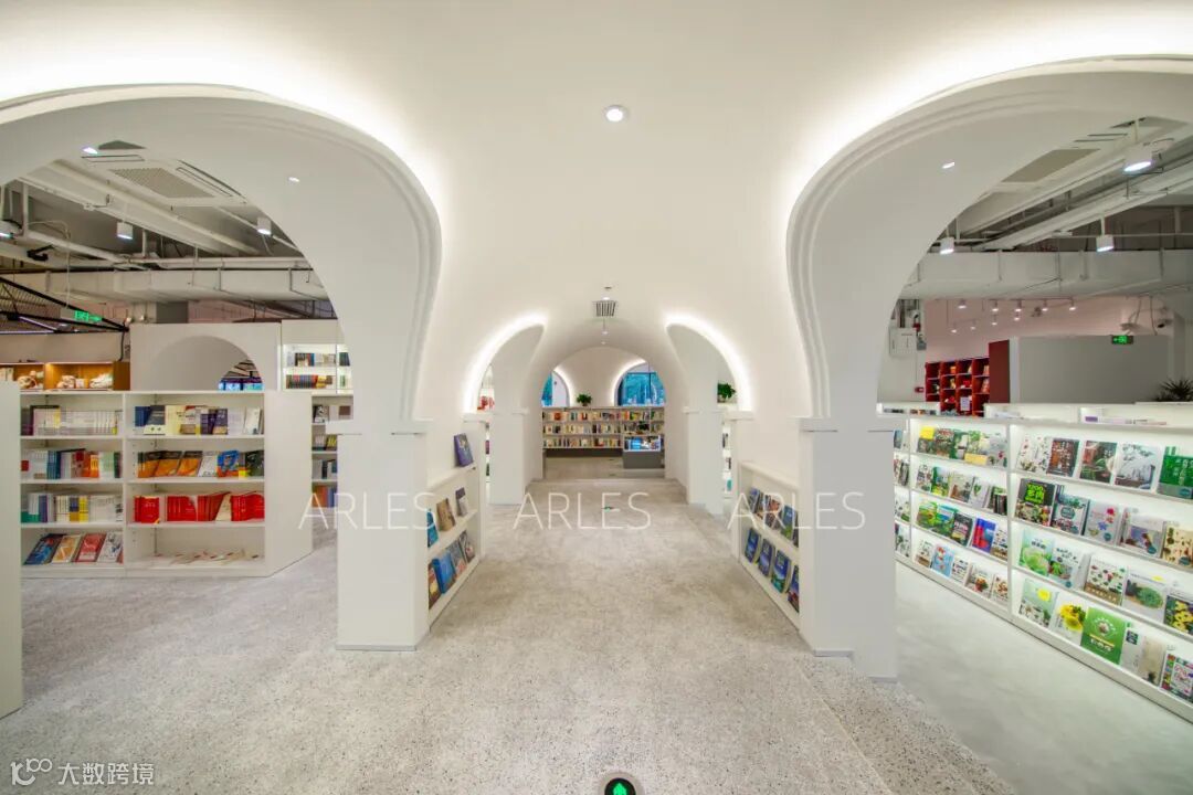 一楼·溯源水乡记忆:青石板路蜿蜒如河道,舟楫书架悬浮空中,铜质麒麟静卧服务台。读者穿行于拱门与廊桥间,脚下是抽象化的“疍家水街”,头顶是线性灯光勾勒的星河。黄阁镇古村落的屋架元素化作“水岸民居”,下沉台阶形成“渡口”,每一处转角都是岭南文化的基因碎片。