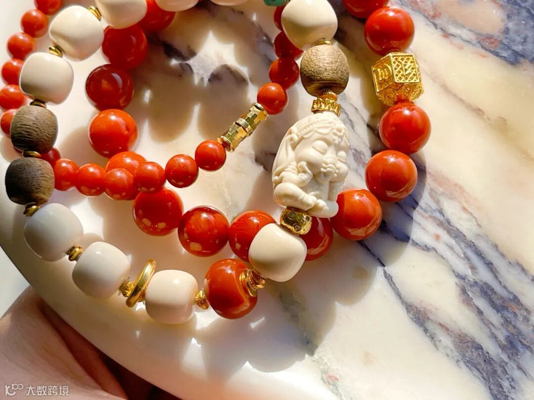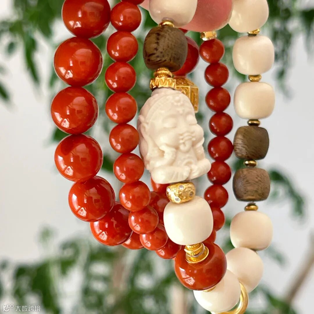 ✅ 颜值抗打:猛犸+南红+金饰的搭配,不管是年轻人还是长辈都能get到的好看;