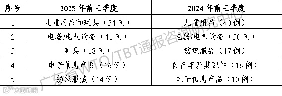 注:本表2024年前三季度数据来源于本公众号《2024年前三季度TBT通报和出口欧美产品受阻情况》。