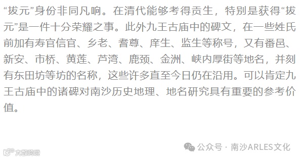 九王古庙里现存有刻于乾隆四十六年(1781年)的《重修九王庙小引碑》,碑文中记载“九王古庙,胜迹迥殊。建自宋人,名垂邑乘”。由此看来自宋代起,南沙九王崇拜便已盛行。每年端午节后二日,是九王升腾受封之日。到了这一天,十里八乡男女老少携带猪羊酒食等前来九王古庙祭拜九王,场面热闹非常。