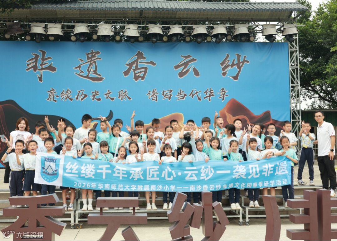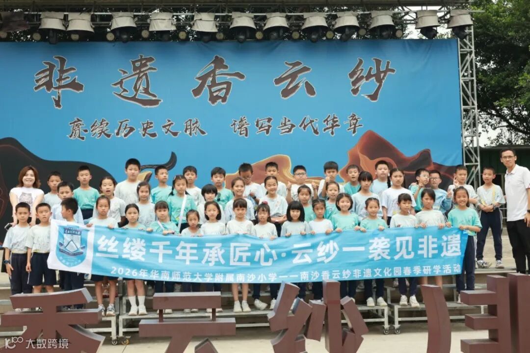 三月二十七日,春日的阳光洒在云纱星韵香云纱非遗文化园。这一天,园区迎来了华南师范大学附属南沙小学的孩子们。从文化馆到晒莨场,从过乌到蚕丝扇,一场关于时间、泥土与光的实验,在孩子们的手心里悄悄发芽~