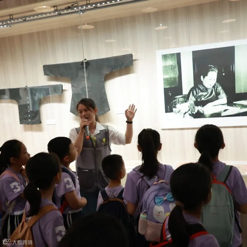 孩子们听得入神,纷纷凑近玻璃展柜,想看看照片里那件旗袍的纹路。