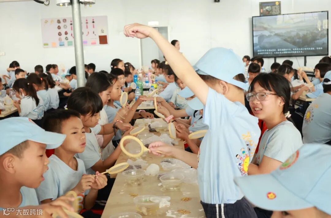 蚕丝扇DIY的体验课上,孩子们小心翼翼地抽出蚕丝,均匀缠绕在扇骨上。一圈,两圈,三圈……