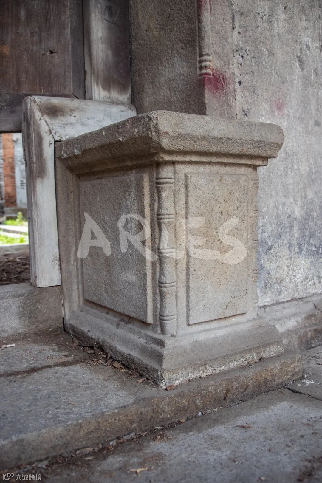 门前的门枕石(抱鼓石)为方形素面样式,侧面雕刻的竹节纹,寓意着“步步高升”与“竹报平安”,既是对先祖高风亮节的赞颂,也寄托着村民们希望后代子孙学业有成、家族兴旺的美好心愿;