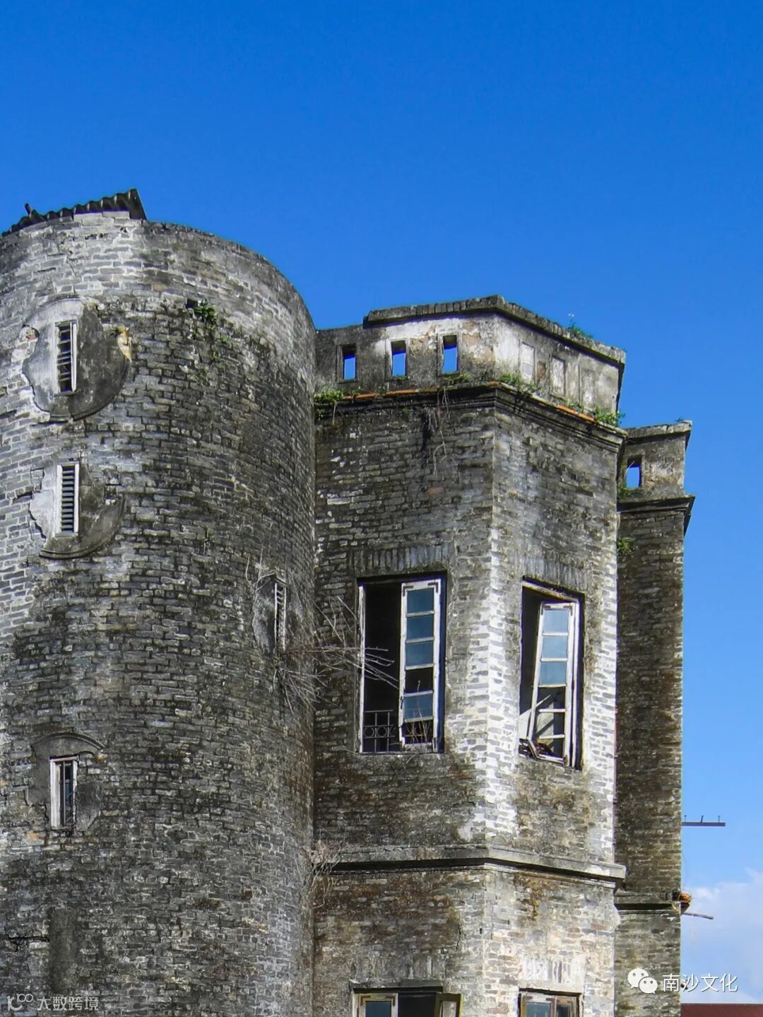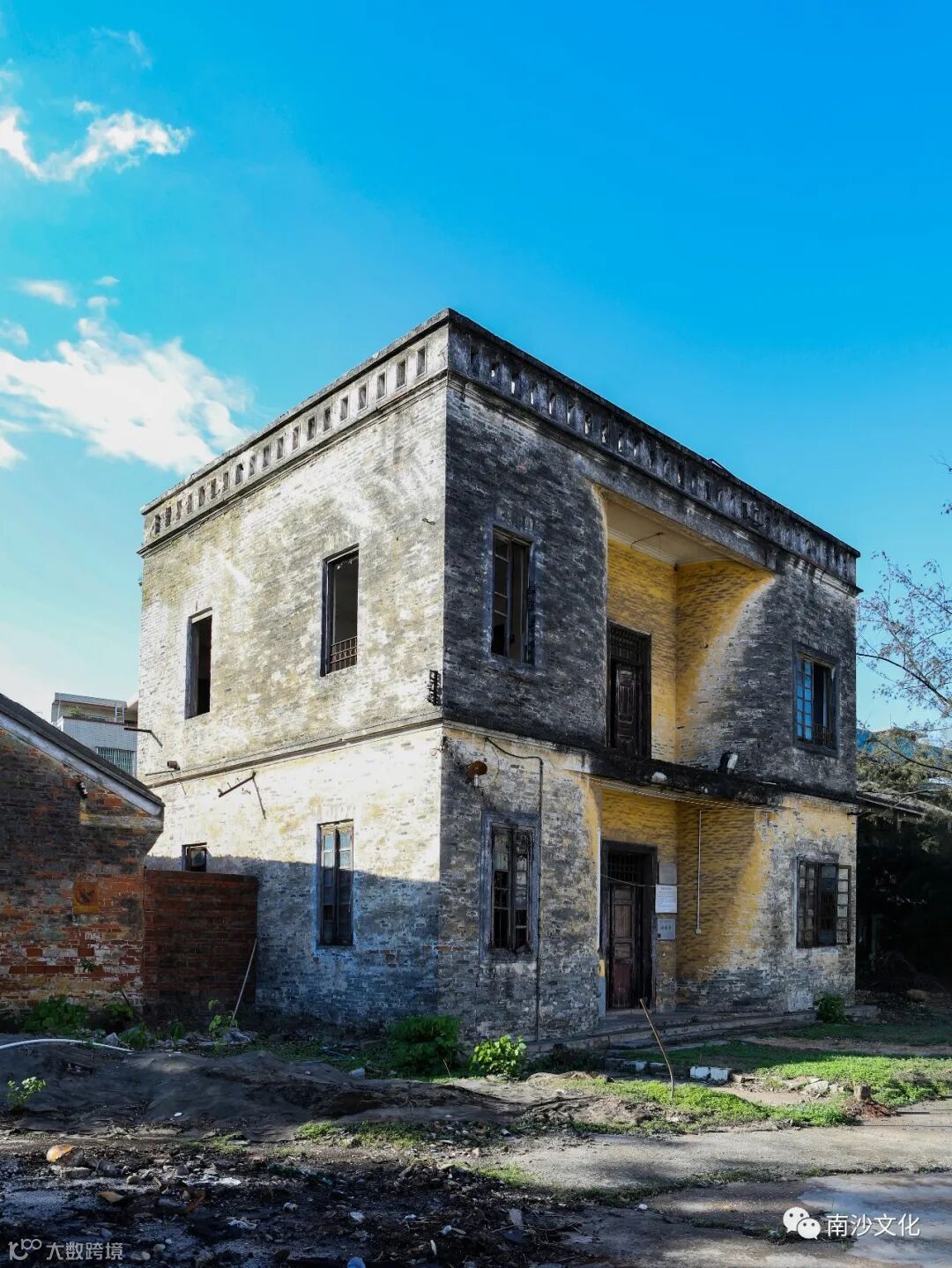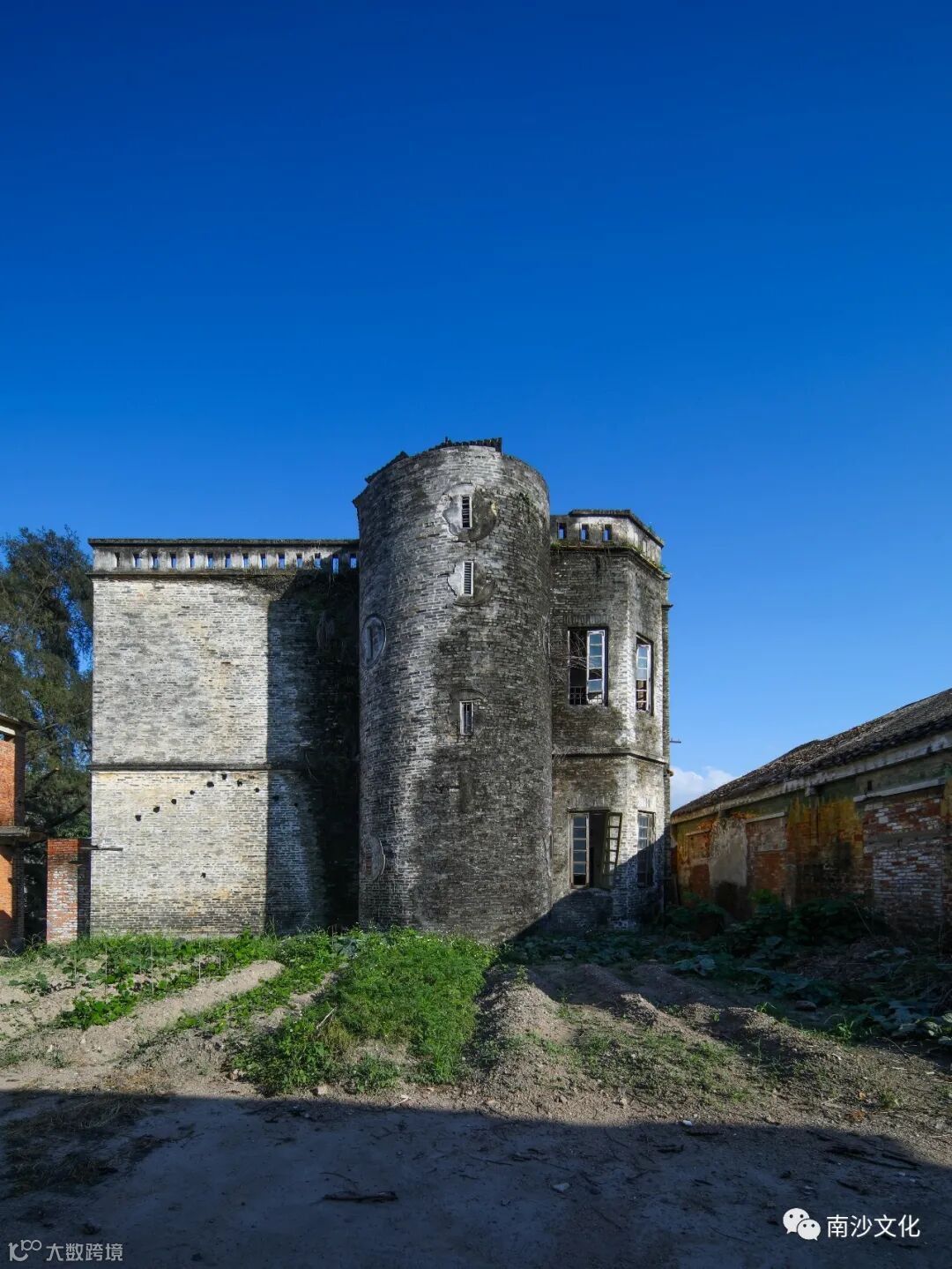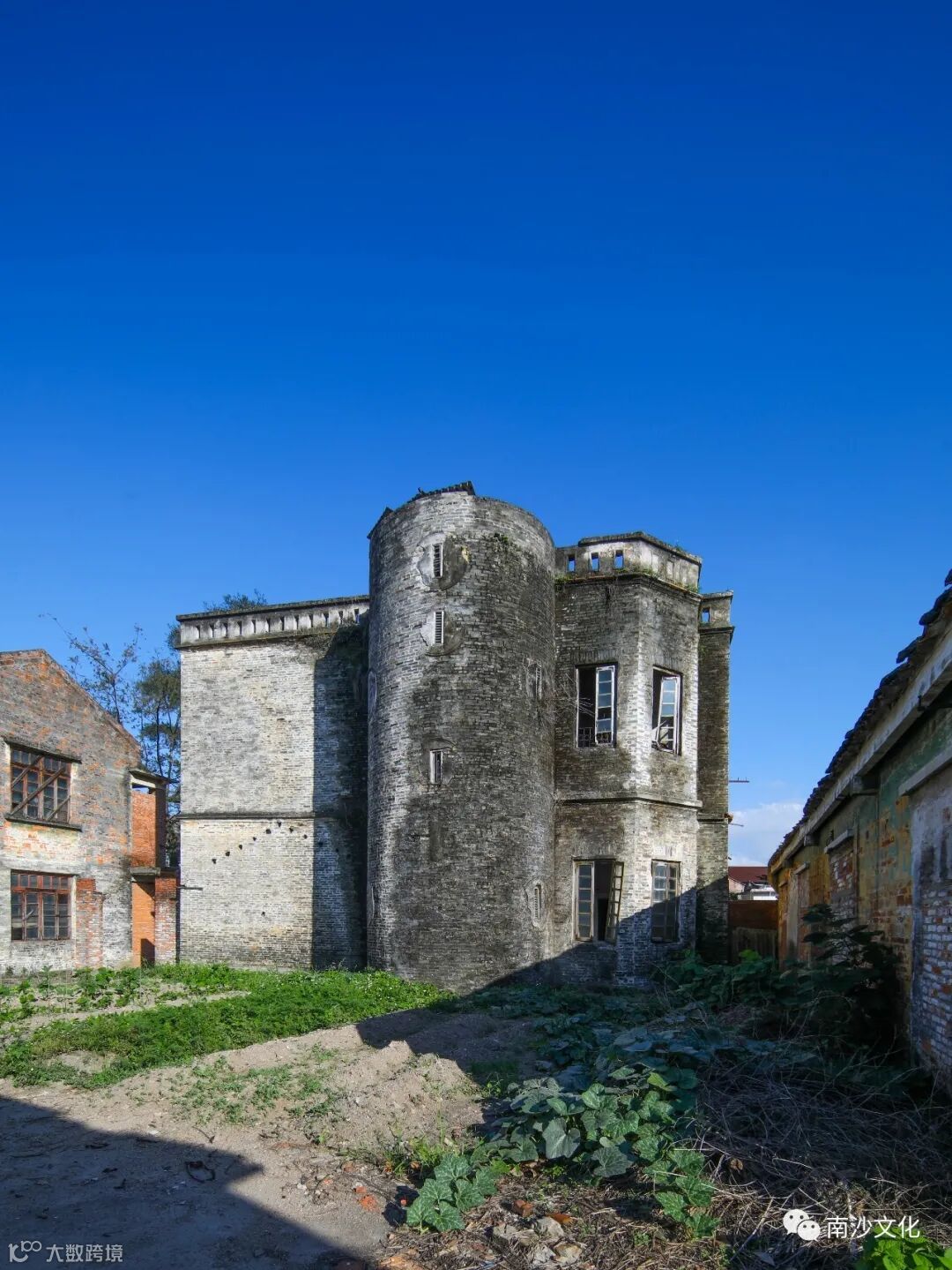 楼背面中间部位凸出约4米,砌筑成平面半圆形的炮楼。上下设有多个枪眼和暸望窗。楼顶四周设有围栏,每隔0.30米设一炮眼。一层至二层设有折上式石砌楼梯。该建筑的建设者李辅群是抗战期间的大汉奸,卖国求荣,中饱私囊,该楼是他为寻避难而建,对研究南沙抗战期间的历史很有帮助。2005年9月,公布为广州市登记保护文物单位。2008年12月,公布为广州市文物保护单位。