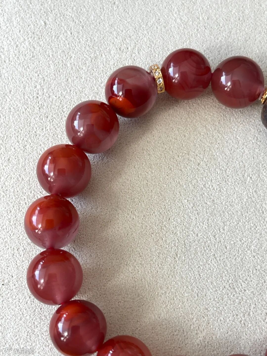 这串南红的飘花真的戳中我!红雾般的纹路在珠子里飘逸流转,戴在腕间轻轻晃动,像把“流动的红韵”揣在手上,单戴叠戴都超有氛围感。