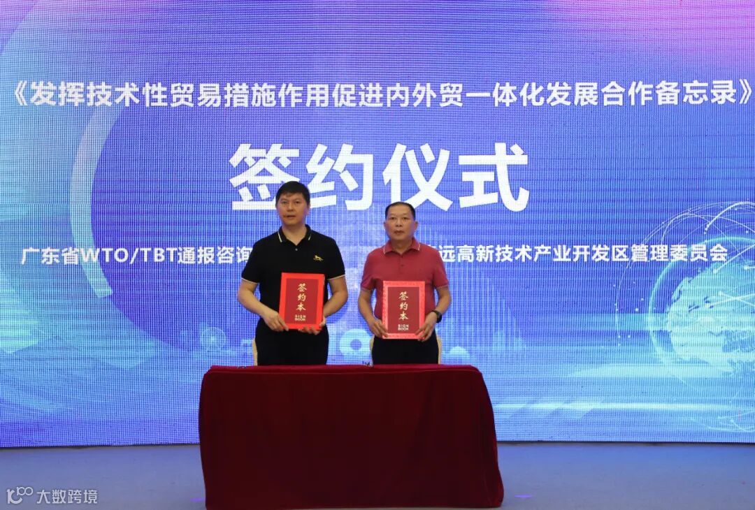 省WTO/TBT中心与清远高新区管委会签订《发挥技术性贸易措施作用 促进内外贸一体化发展合作备忘录》