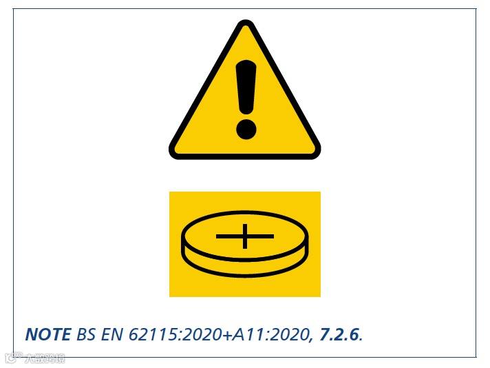 2. 电池盒紧固件:如果使用螺钉或类似紧固件来固定提供进入电池舱的门/盖,螺钉或类似紧固件应被固定,以便它们留在门、盖或设备内。其需要满足标准BS EN IEC 62115:2020+A11:2020, 13.4.6或BS EN 60598‑1:2015+A1:2018, 8.2.6;