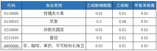 某些产品中的最大残留限量