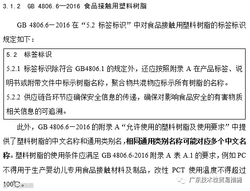 第三章 “食品接触用塑料制品标签标识相关标准法规”内容节选