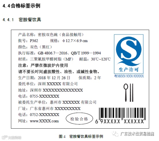 第四章 “食品接触用塑料制品标签标识的要求”内容节选