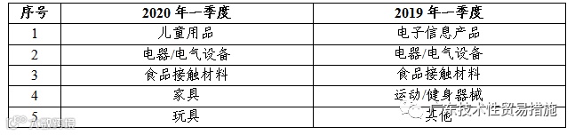 表1 2020年一季度美国CPSC召回中国出口消费品前5类产品