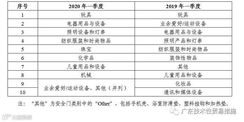 表2 2020年一季度欧盟安全门通报中国产消费品前10类产品