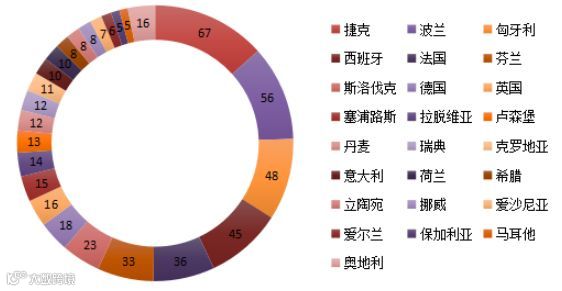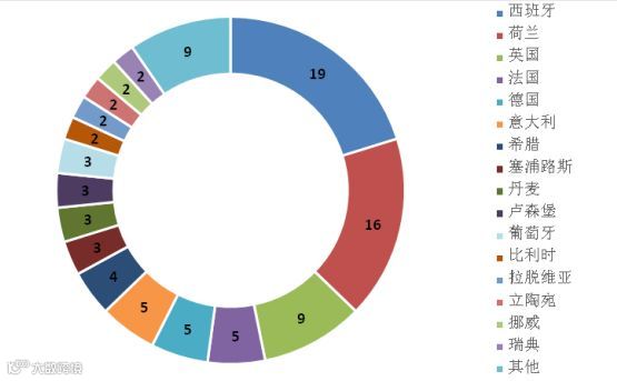 图4 2018年上半年欧盟RAPEX召回中国消费品的国家分布
