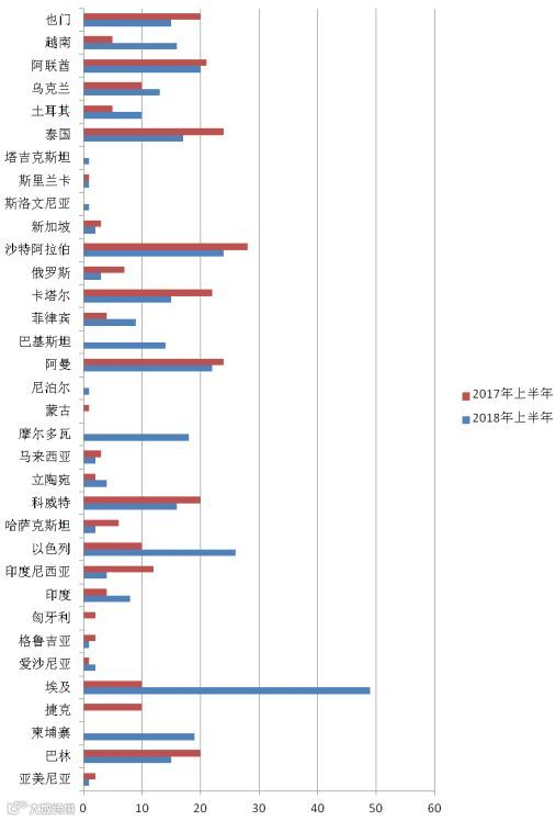 图1 2017年和2018年上半年一带一路国家通报数比对