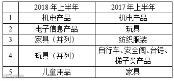 2018年上半年我国出口消费品的欧美召回情况