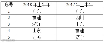 表5 2018年上半年与去年同期美国FDA拒绝进口食品前5个省份/地区比对