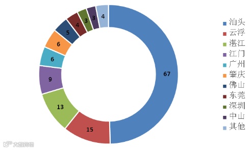 图5 2018年上半年美国FDA拒绝进口的广东农食产品地市分布