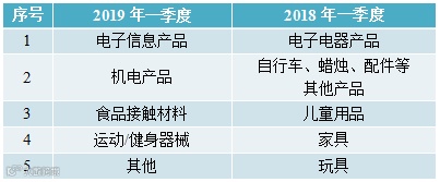 表2 2018年和2019年一季度美国CPSC召回中国出口消费品前5类产品