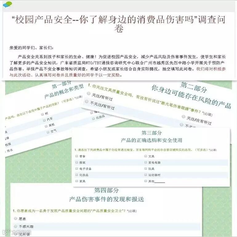 “消费品安全监测问卷调查表”以及“守护消费者安全,远离产品伤害”宣传栏作为“广东省消费品安全监测试点(学校)”工作的第一次出击,意在普及安全知识,提高风险意识,为本年度宣传教育和伤害信息采集工作奠定基础。同学们和家长们对消费品安全问题的关注度空前提高,我中心还将对活动进行认真总结,围绕“创造健康安全生活环境”等主题持续开展系列产品安全教育暨风险监测活动。