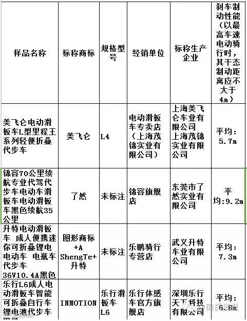 经测试,20个样品中除1个样品干态制动距离刚好为4米外,19个样品干态制动距离远大于4米,刹车距离最长的达到了9.9米。